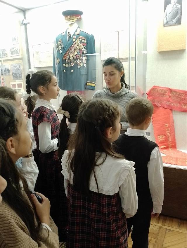 26 сентября ученики 3 «А» класса МБОУ СОШ № 37 г. Владикавказа вместе с классным руководителем Мурзабековой Азой Борисовной посетили Дом-музей генерала Иссы Александровича Плиева. Ребят встретила приветливый экскурсовод и они отправились в увлекательное путешествие, рассматривая экспонаты музея.