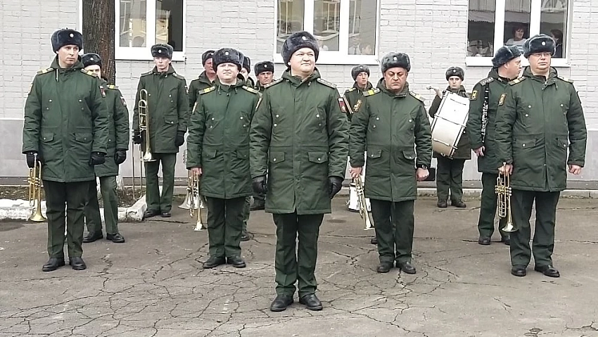 Понедельник, 22 декабря, в нашей школе традиционно начался с поднятия флага РФ и исполнения гимнов. Аккомпанировал нашим ребятам в исполнении гимнов военный оркестр.